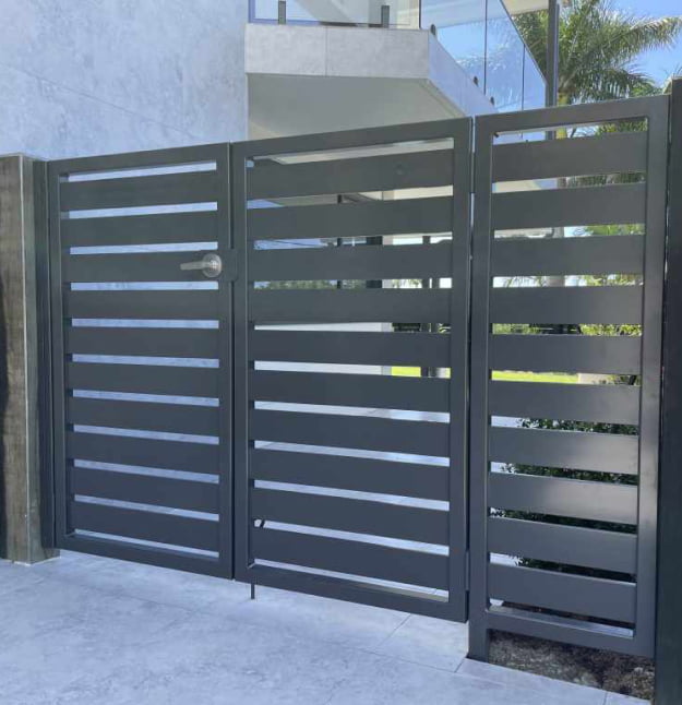 Aluminium Battens Style gates are one of our most popular designs followed by Slat style gates and louvre style gates. Other gates styles include decorative panel gates, acrylic insert gates and tubular style gates.