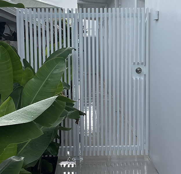 Aluminium gates make the perfect choice for our Gold Coast weather as aluminium can withstand the hot sun, rain and wind and most of all, aluminium is rarely affected by corrosion.